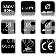 - для сварки муфт, труб и фитингов с макс. диаметром 40 мм;